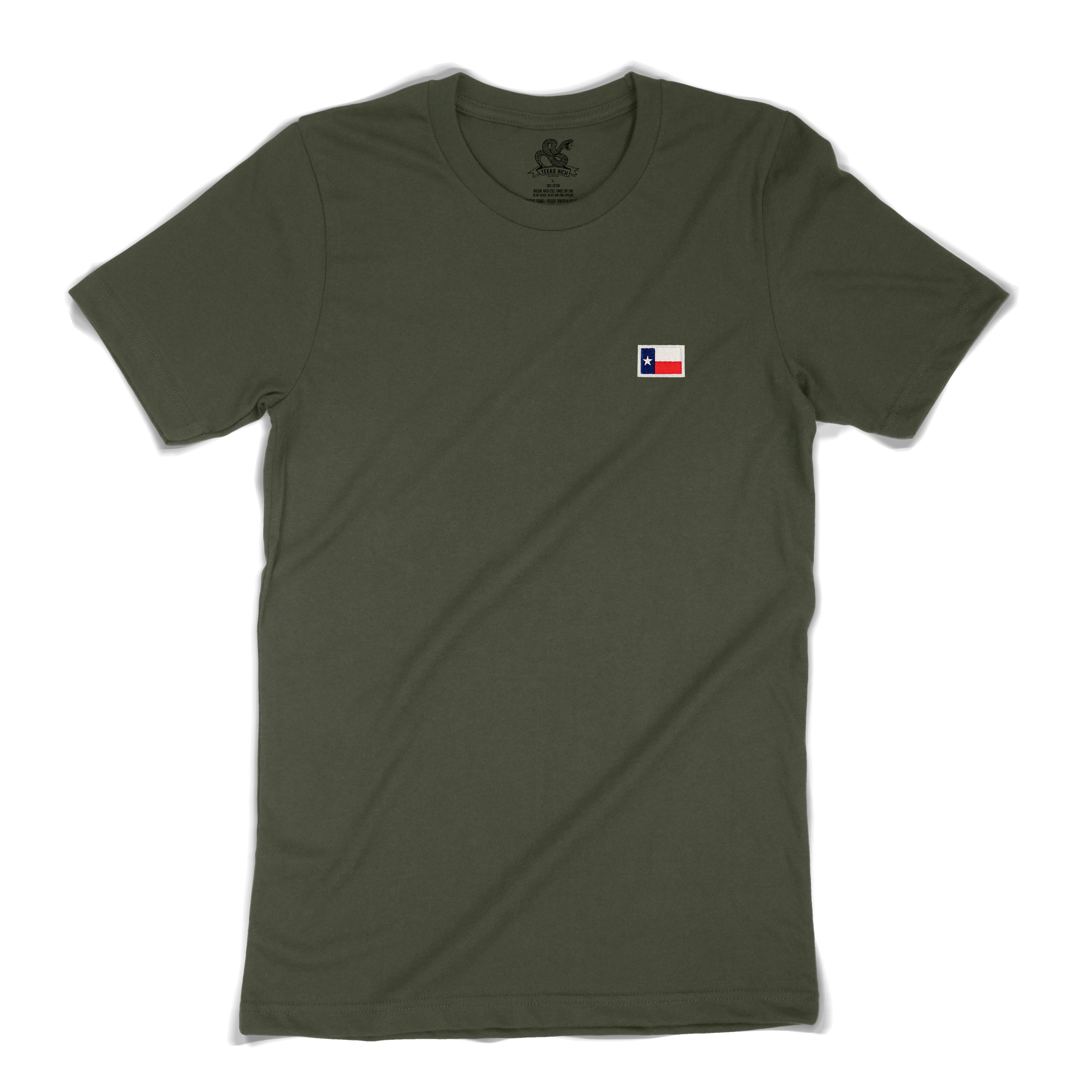 The patches on our Flag T-SHIRT are applied locally in Prosper, TX and reinforced with heat set patch adhesive. We do recommend that you follow the special laundering instructions included on the inner tag so that you can enjoy the T-Shirt for years to come. Ships within 3-6 business days.